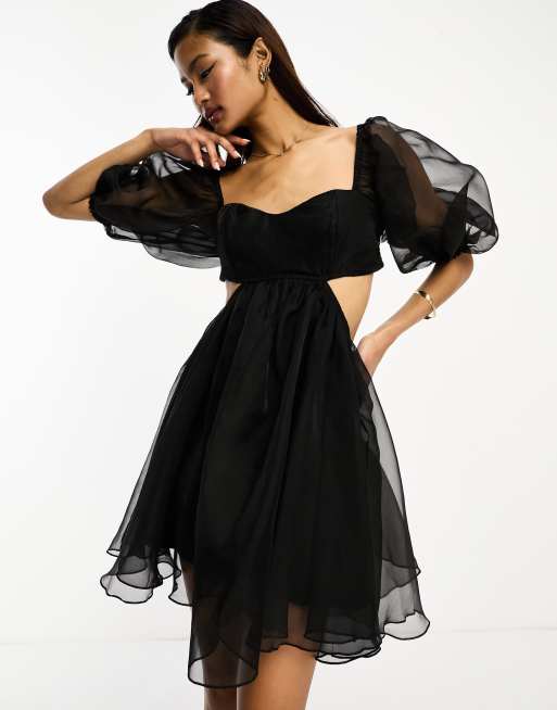 Vestido corto negro de organza de Lace & Beads