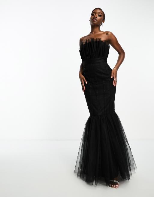 Vestido largo negro de corte sirena sin tirantes de tul de Lace & Beads
