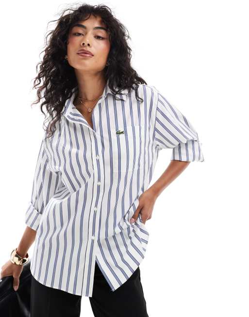 Camisa de manga larga de rayas en azul de Lacoste