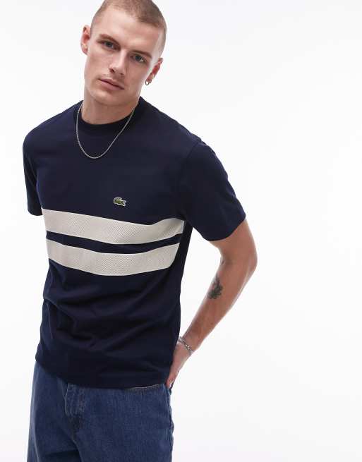 Camiseta azul marino con insertos de paneles blancos de Lacoste