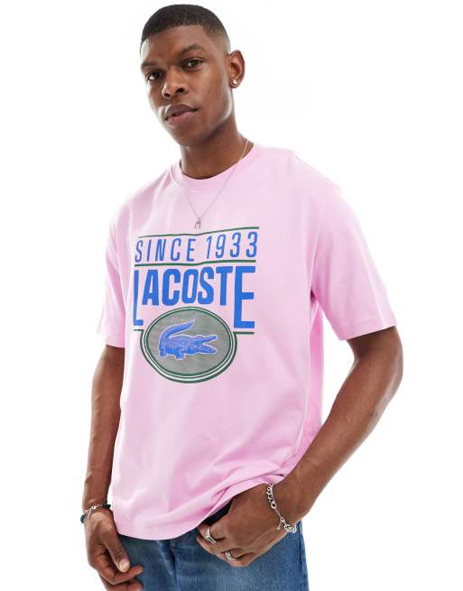 Camiseta rosa con logo y gráfico en la parte delantera de Lacoste