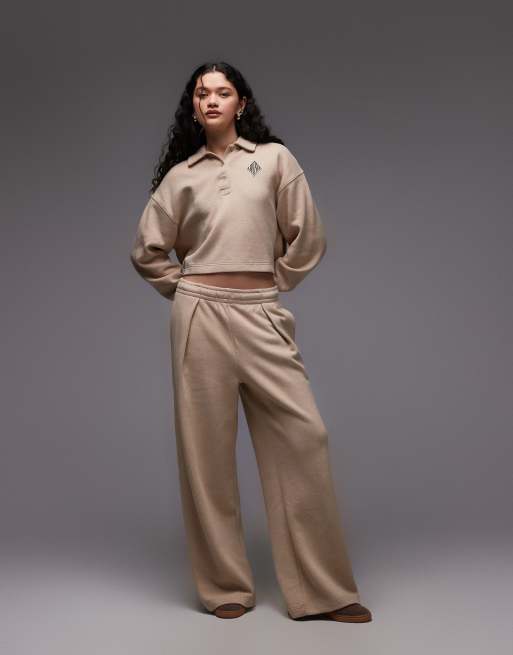 Conjunto beis de polo y pantalones de chándal de pernera ancha de Lacoste