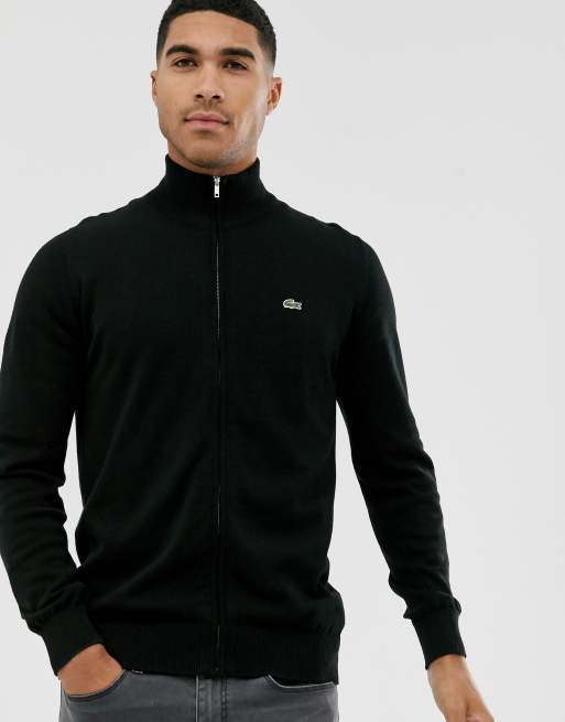 Jersey de punto de algodón con cremallera en negro de Lacoste