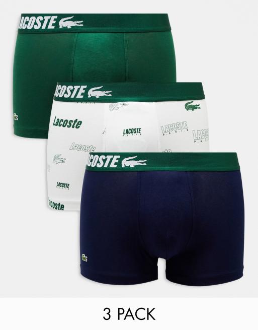 Pack de 3 calzoncillos verdes elásticos con logo de algodón de Lacoste