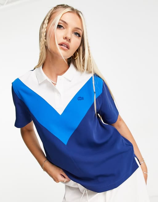 Polo azul con diseño color block de Lacoste