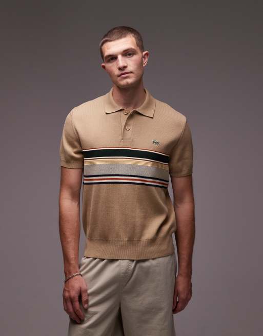 Polo beis a rayas de punto de Lacoste