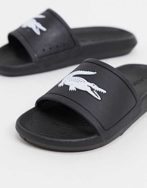 Sandalias en negro y blanco con logo Croco de Lacoste