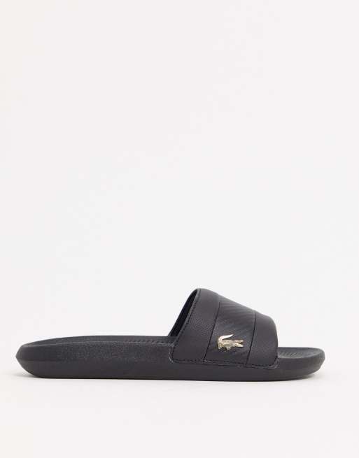Sandalias negras con cocodrilo dorado de Lacoste
