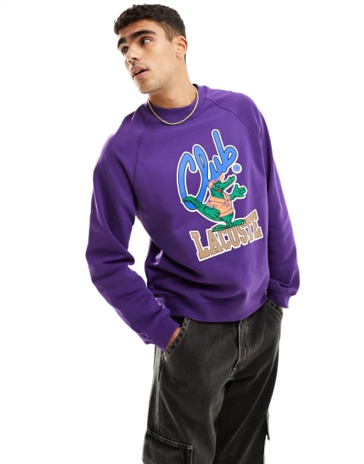 Sudadera morado oscuro con estampado gráfico retro en la parte delantera de Lacoste