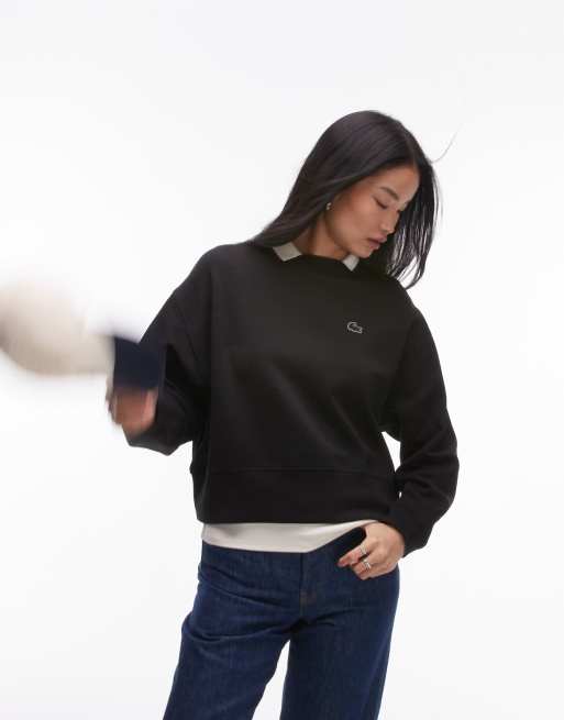 Sudadera negra deportiva con cuello redondo y logo de Lacoste
