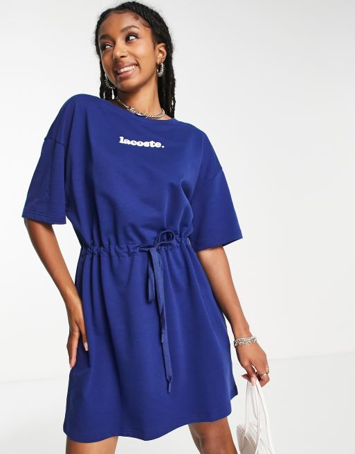 Vestido corto azul marino con cordón ajustable en la cintura y logo de Lacoste