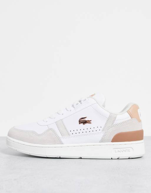 Zapatillas de deporte con ribetes dorado rosa de ante y cuero T-Clip de Lacoste