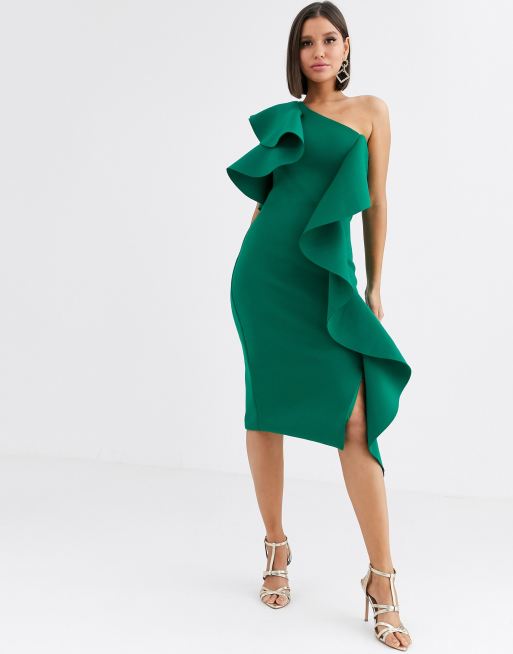 Vestido midi de neopreno con hombros descubiertos en verde esmeralda de Lavish Alice