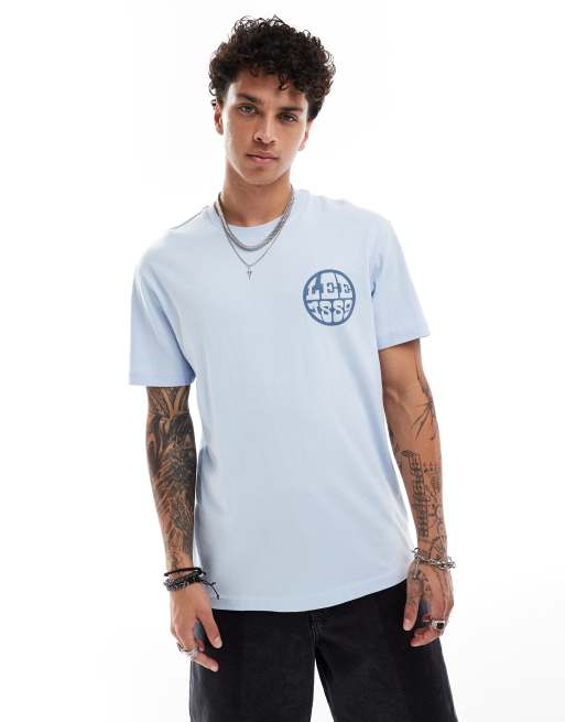 Camiseta azul claro holgada con logo circular 1889 de Lee