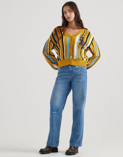 Cárdigan color oliva a rayas con detalle anudado de la colección cápsula de Lee x Jean-Michel Basquiat