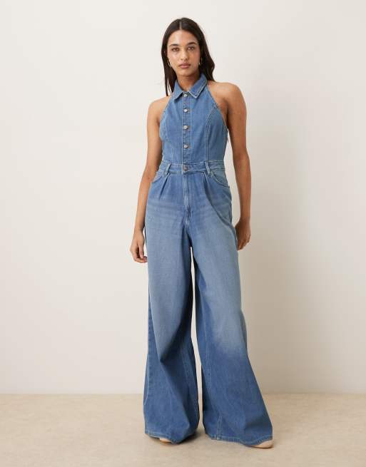 Mono largo azul claro de pernera ancha con cuello halter de Lee
