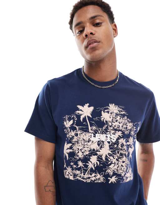 Camiseta azul marino holgada con estampado del logo con flores de Levi's