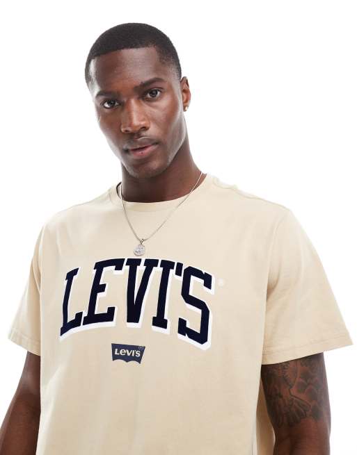 Camiseta beis holgada con capucha y logo de estilo universitario de Levi's