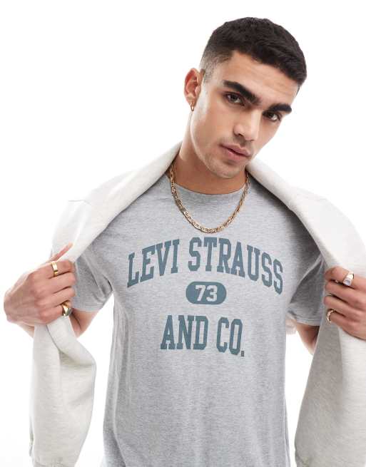 Camiseta gris jaspeado holgada con logo de estilo universitario de Levi's