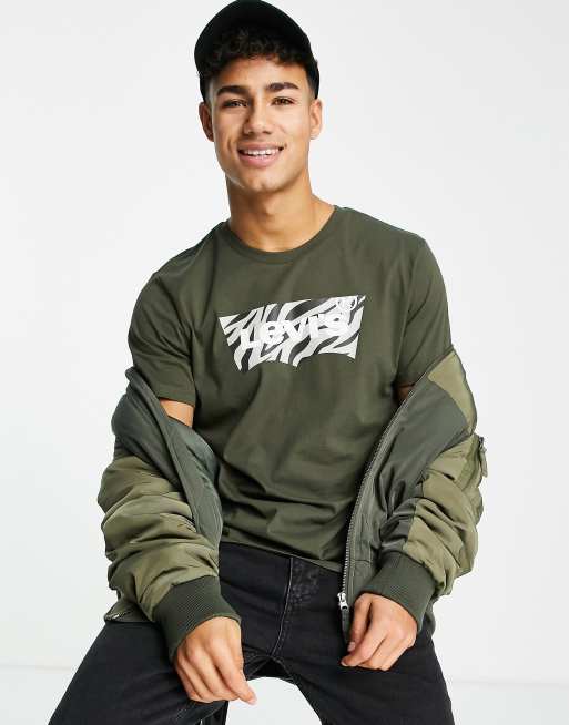 Camiseta negra con estampado de cebra y logo de alas de murciélago de Levi's