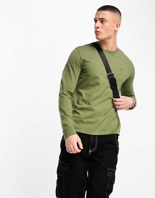 Camiseta verde de manga larga con logo pequeño de ala de murciélago de Levi's