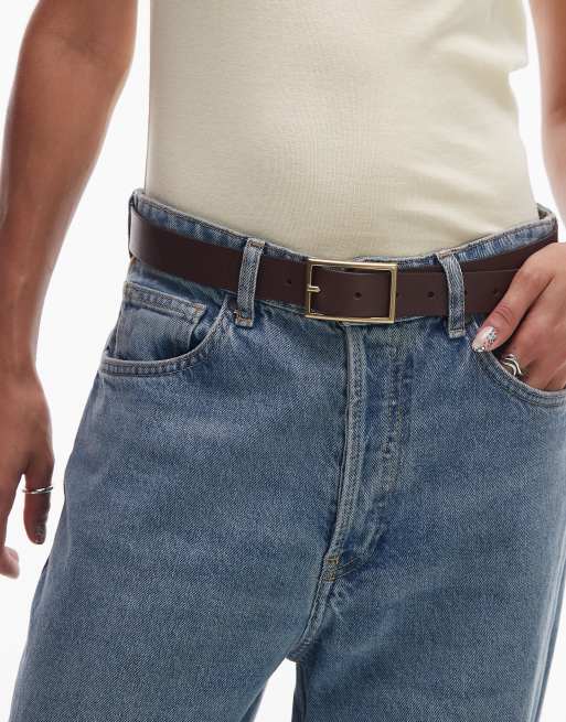 Cinturón marrón de cuero con hebilla rectangular de Levi's