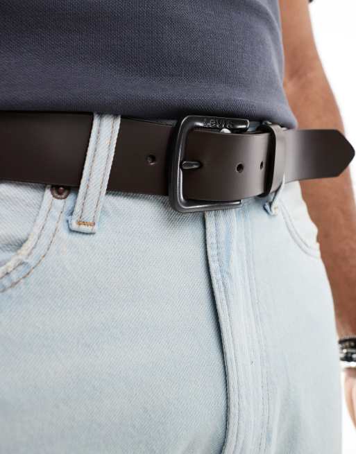 Cinturón marrón oscuro de cuero con logo en la hebilla Seine de Levi's