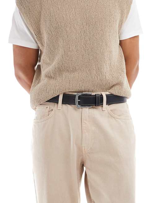 Cinturón negro de cuero con hebilla con logo plateada Loire de Levi's