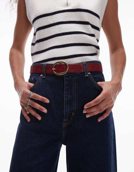 Cinturón rojo oscuro para cintura y cadera de cuero con hebilla dorada de Levi's