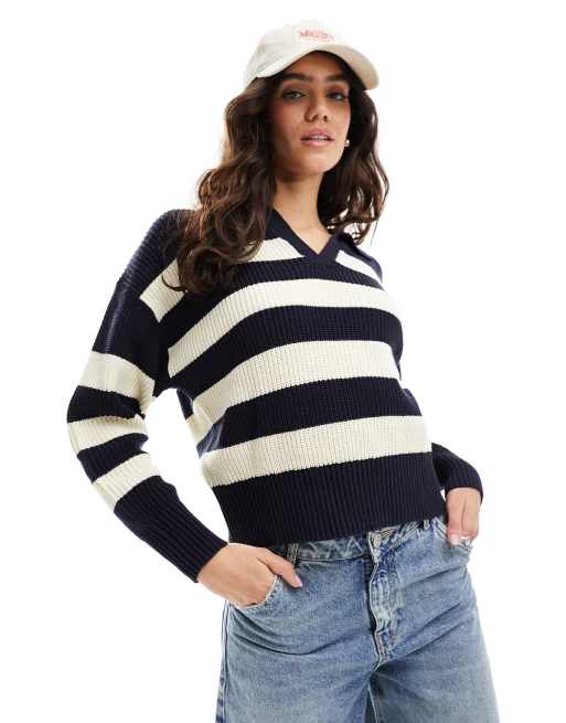 Jersey a rayas negras con cuello de pico con solapas Eve de Levi's