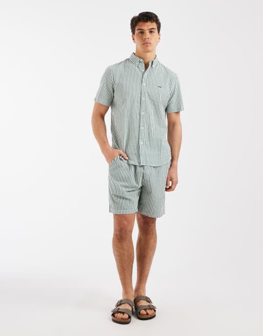 Levi's - Authentic - Conjunto verde a rayas de pantalones cortos y camisa de manga corta