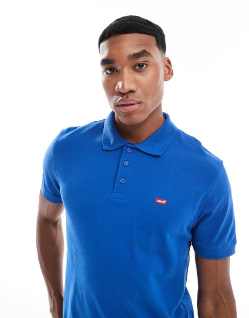 Polo azul medio de corte slim con logo de murciélago de piqué de Levi's