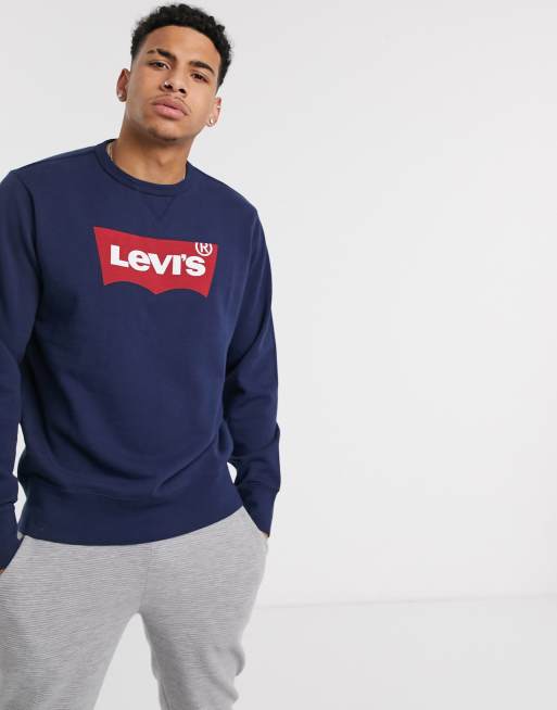 Sudadera azul marino con cuello redondo y logo de alas de murciélago de Levi's