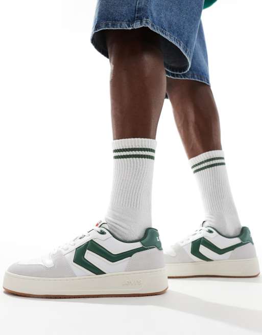 Zapatillas deportivas blancas y verdes con suela gruesa y parche del logo Glide L de Levi's