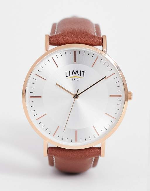 Reloj de cuero sintético en marrón con detalle de costuras de Limit