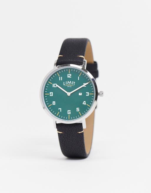 Reloj de pulsera negro de cuero sintético con esfera verde de Limit