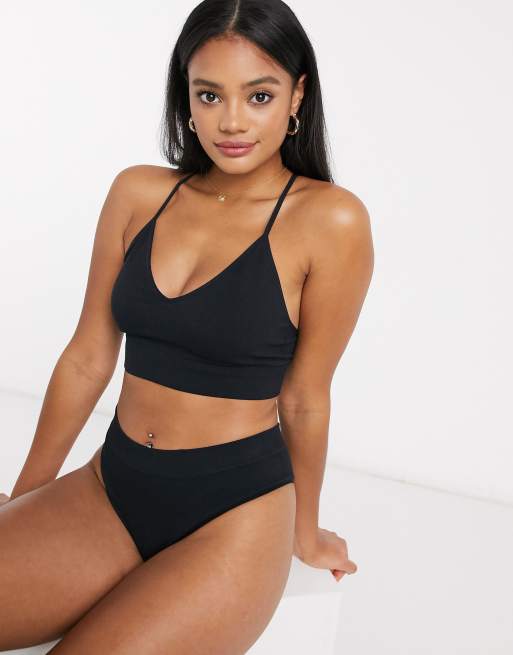 Braguita brasileña negra de pernera alta en canalé sin costuras de Lindex
