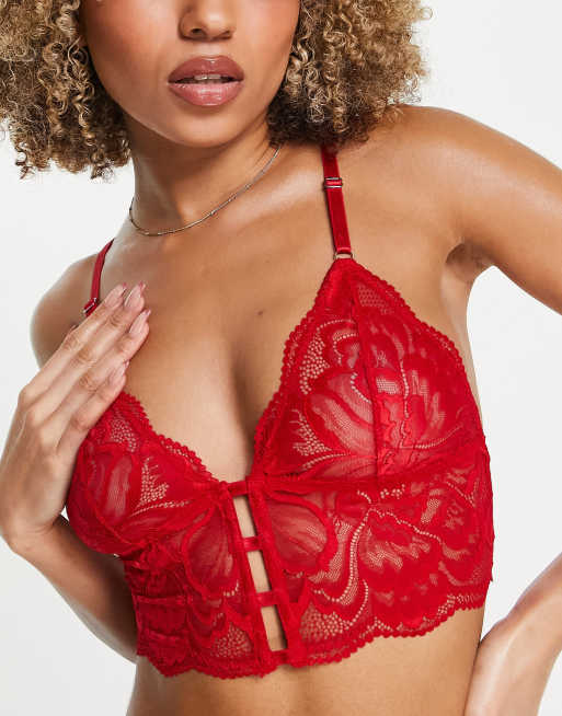 Bralette largo rojo con diseño de tiras en la espalda de encaje transparente Elsa de Lindex