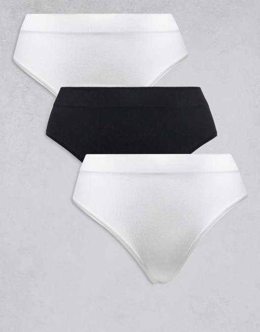 Pack de 3 braguitas brasileñas de color negro y blanco de canalé sin costuras de Lindex