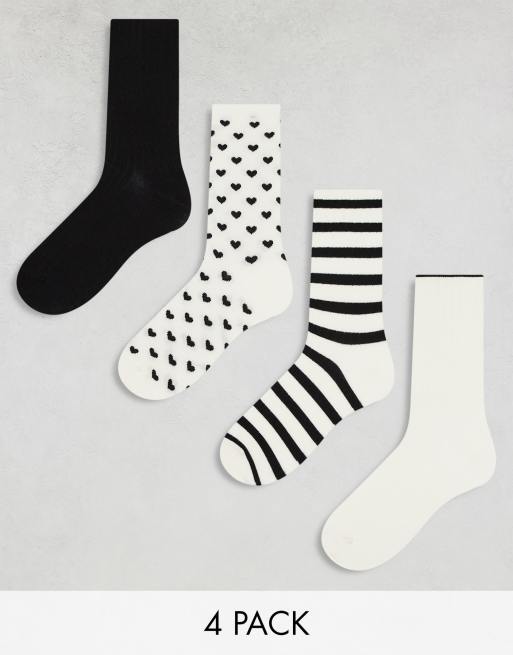 Pack de 4 pares de calcetines de color blanco y negro con diferentes patrones de Lindex