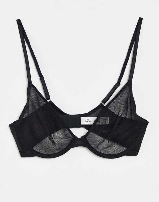 Sujetador negro con aros de malla transparente Tina de Lindex