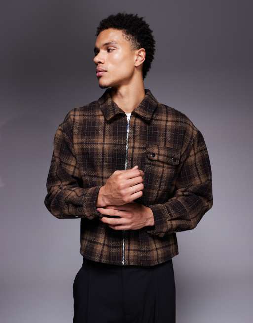 Camisa marrón a cuadros de corte cuadrado con cremallera de Liquor N Poker