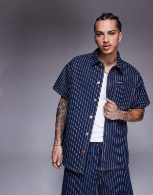 Camisa vaquera azul oscuro extragrande con raya diplomática de Liquor N Poker