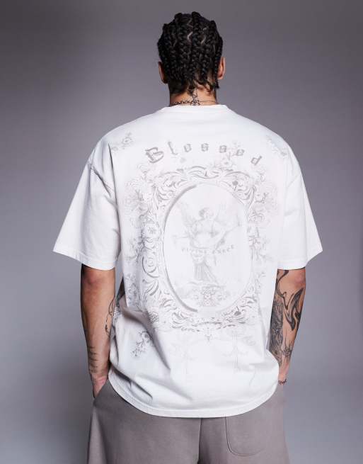Camiseta blanco hueso holgada con estampado en la espalda Royal Emblem de Liquor N Poker