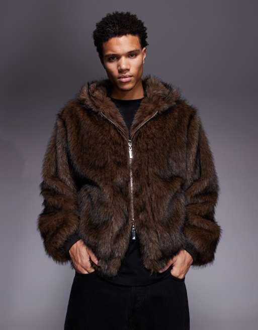 Chaqueta bomber marrón de corte cuadrado de piel sintética de Liquor N Poker