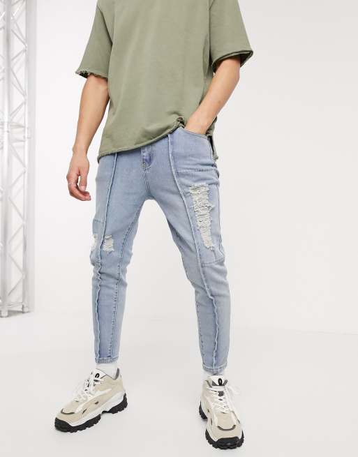 Vaqueros azul claro muy ajustados con detalle de costuras de Liquor N Poker