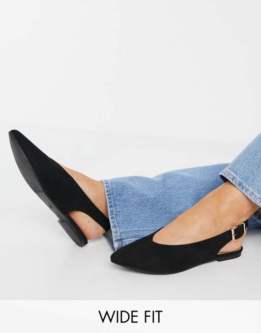 Bailarinas negras con tira en el talón de London Rebel Wide Fit
