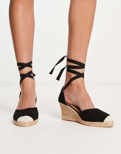 Alpargatas negras de cuña con diseño anudado a la pierna de London Rebel