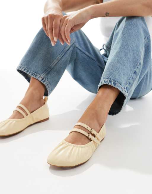 Bailarinas amarillas planas con diseño fruncido de tiras Mia de London Rebel