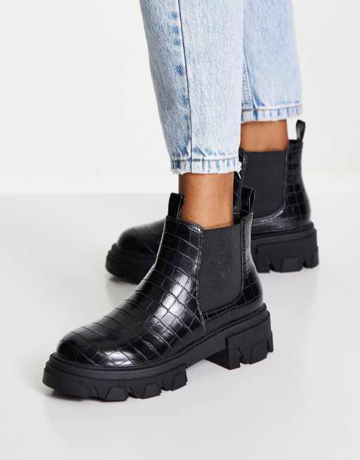 Botas Chelsea negro cocodrilo con suela gruesa de London Rebel